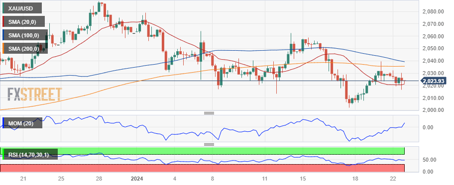 Spot Gold changed course after falling to $2,016.42 early in the American session and trades around $2,024, posting modest intraday losses. The US Dollar sees limited demand amid strength in global indexes, with Wall Street extending gains on the back of solid earnings reports and decreasing odds for a rate hike in March.