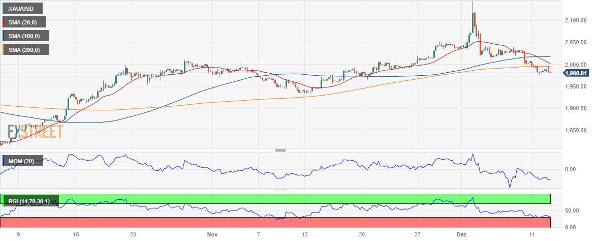 Gold prices changed little on Tuesday, with XAU/USD hovering around $1,980.00. The US Dollar started the day with a soft tone, as the better performance of Asian equities pushed investors away from the safe-haven currency. Still, investors were cautious about placing bets ahead of the release of the United States (US) Consumer Price Index (CPI). The report came as expected, with the monthly CPI up 0.1% and the annual one at 3.1%, slightly lower than the previous 3.2%. Finally, the core annual gauge was 4%, matching expectations and the October reading.