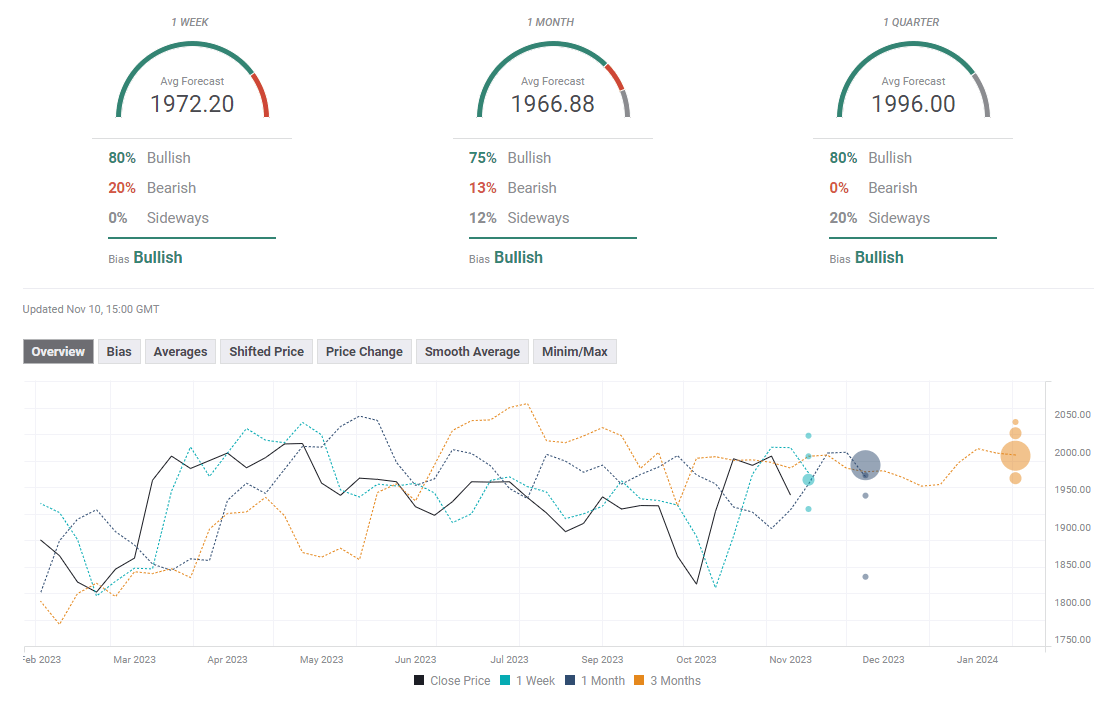 Next week, investors will continue to pay close attention to comments from Fed officials. If policymakers adopt a dovish tone and confirm a no change in policy after inflation data, the USD could come under heavy bearish pressure. Although the market positioning suggests that such a decision is largely priced in, a clear dovish change in language could revive expectations of rate cuts in 2024 and open the door to a steady advance in XAU/USD. Conversely, the pair’s potential gains are likely to remain capped if officials reiterate data-dependency and opt to wait to see November inflation and employment data before giving further guidance on the interest rate outlook.