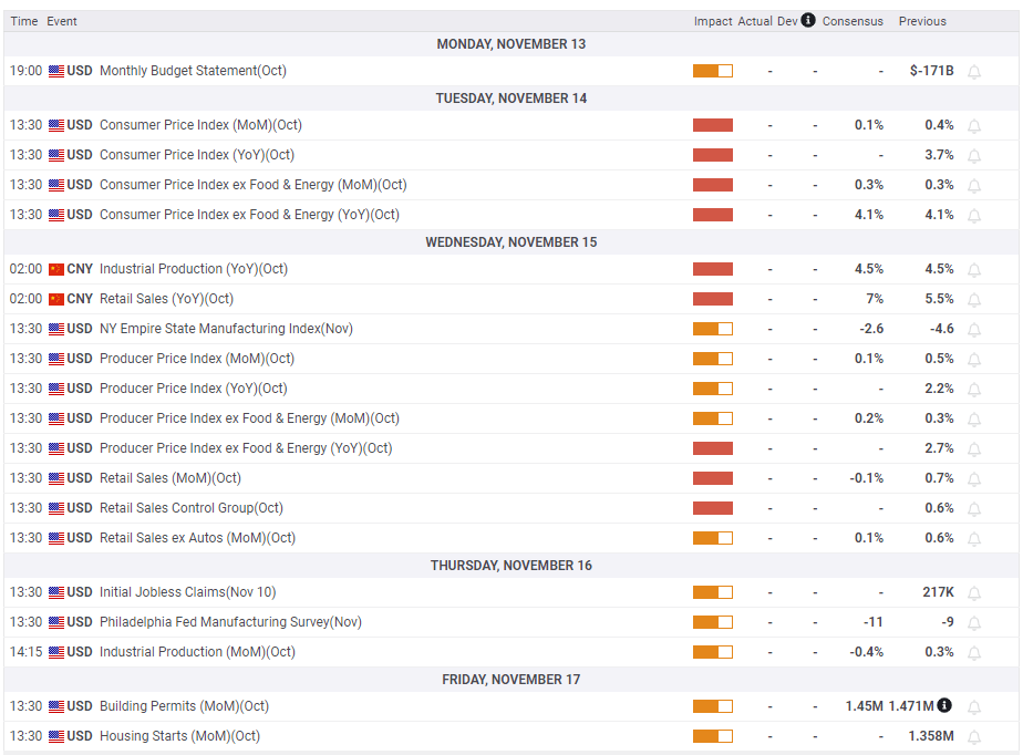 On Wednesday, October Retail Sales data will be featured in the US economic docket. An unexpected increase of 0.5% or higher could highlight strong consumer activity and provide an additional boost to the USD mid-week.