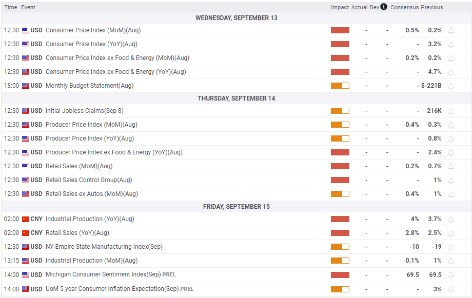 August Consumer Price Index (CPI) data from the US on Wednesday will be the highlight of the week. On a monthly basis, the CPI is forecast to rise 0.5%, while the Core CPI is expected to increase 0.2%. Markets don’t expect the Fed to raise the policy rate in September and inflation readings are unlikely to alter that view. However, the CME Group FedWatch Tool shows that investors still see a nearly 40% probability of the Fed hiking again before the end of the year, either in November or December.