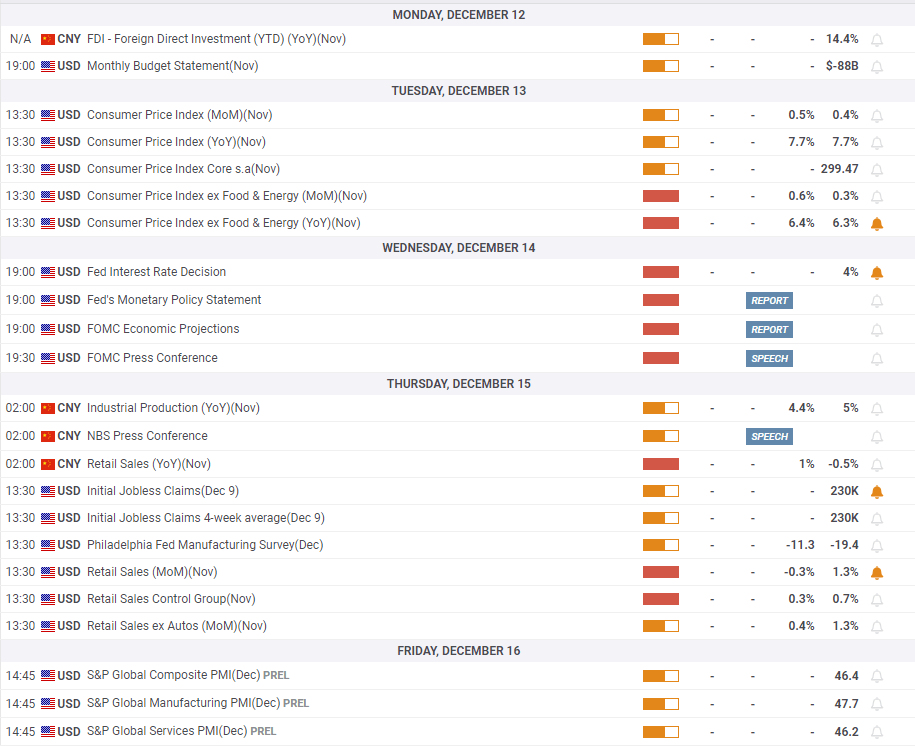 - US CPI data and Federal Reserve's policy announcements will dominate the market action next week.