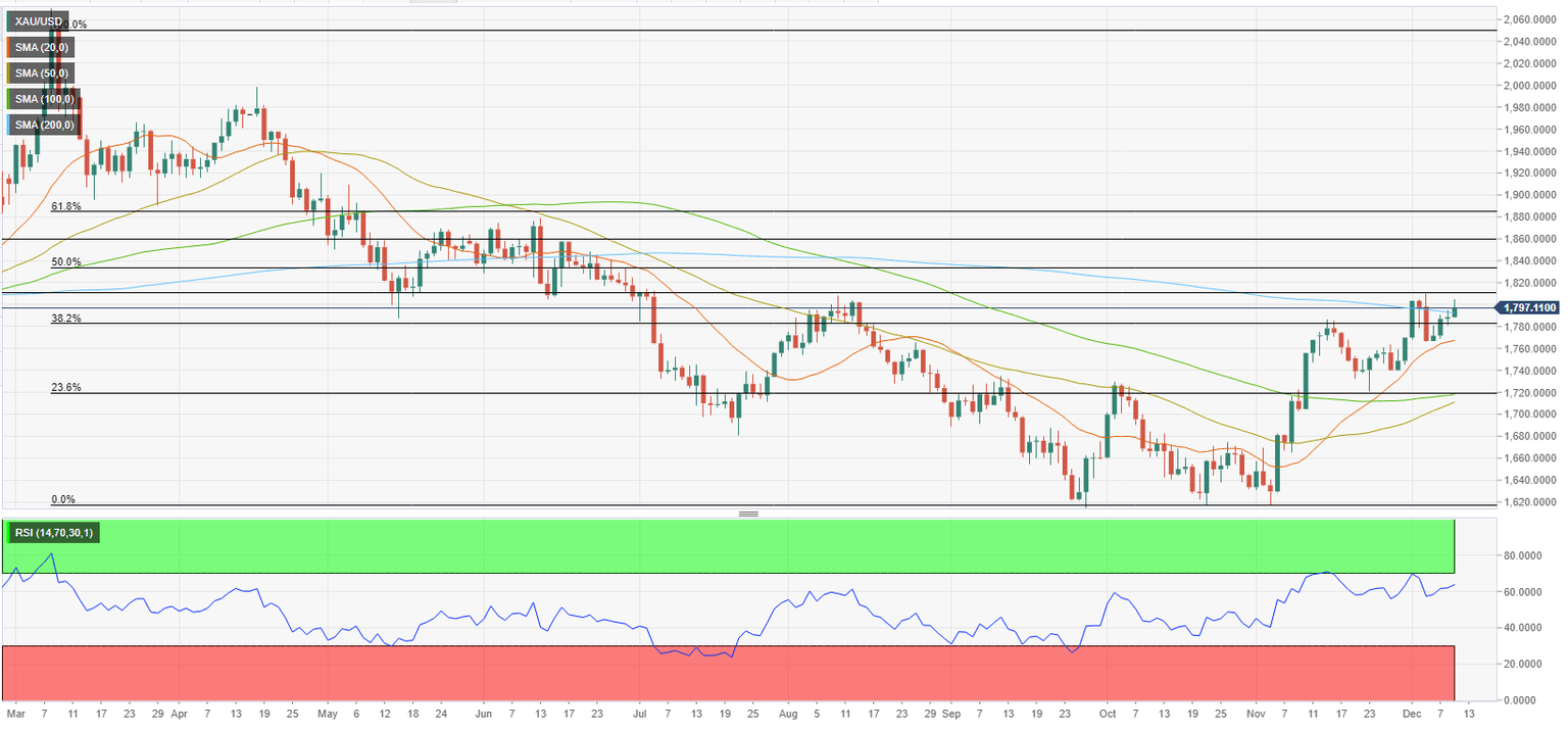 Gold price started the week under bearish pressure and lost more than 1.5% on Monday before regaining its traction. XAU/USD extended its rebound toward $1,800 in the second half of the week but ended up closing the week virtually unchanged. Inflation data from the US and the Federal Reserve’s policy announcements next week will help investors decide whether Gold price will be able to extend its bullish rally into the end of the year.