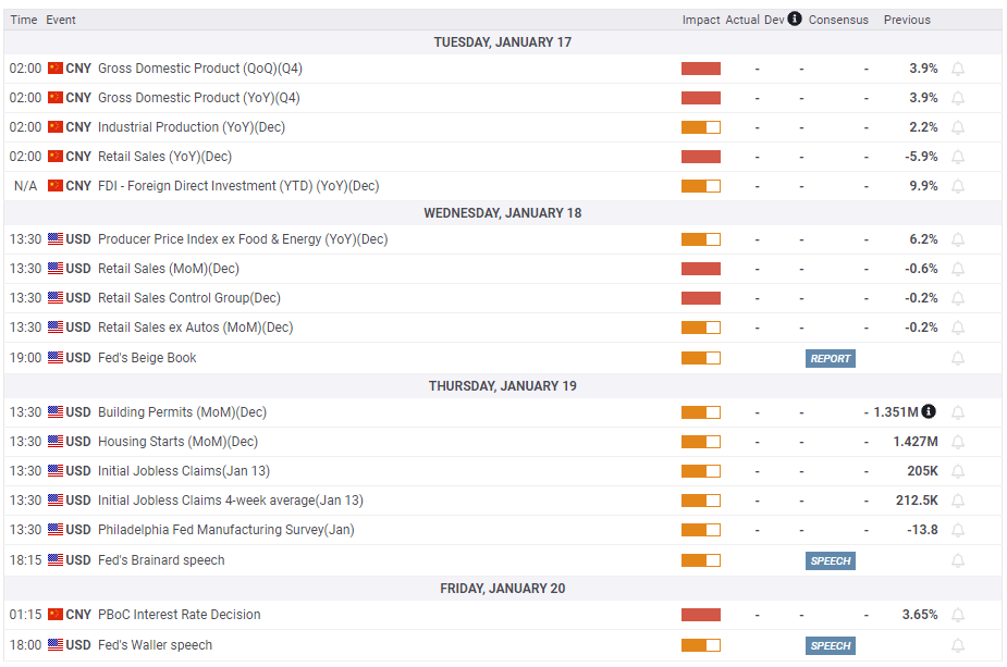 On Tuesday, Gross Domestic Product (GDP) data from China for the fourth quarter, alongside December Retail Sales and Industrial Production figures, will be watched closely by market participants. Better-than-expected economic performance in China, the world's largest gold consumer, could help XAU/USD push higher. On the other hand, the potential negative impact of a disappointing GDP print, which is likely given the surging number of coronavirus infections in December, should remain short-lived.