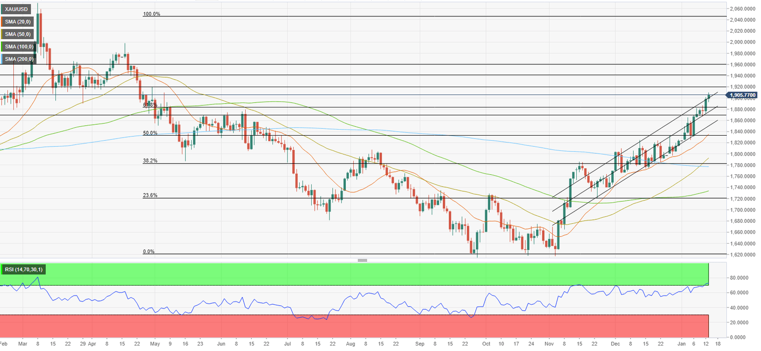 In case Gold price stabilizes above $1,900 and confirms that level as support, it could target $1,920, $1,940 and $1,960, all static levels from April 2022.