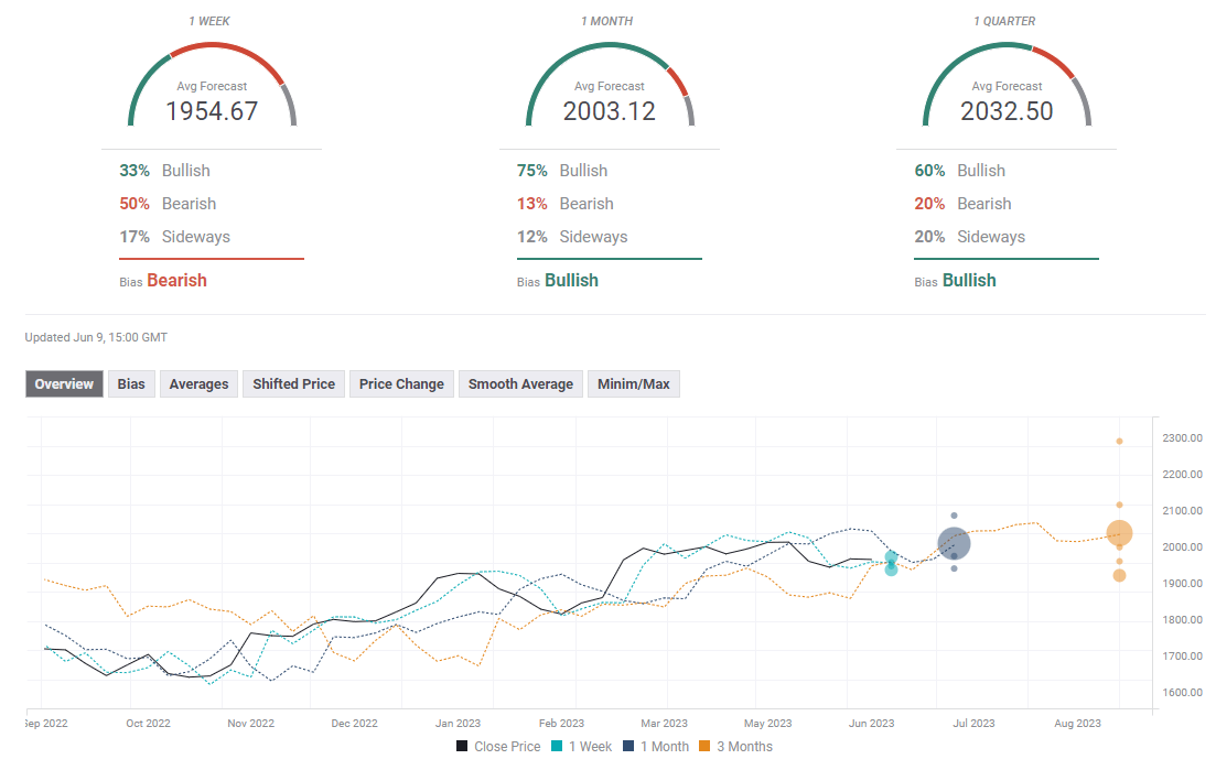FXStreet Forecast Poll highlights a bullish bias in the one-month view with a large portion of experts expecting XAU/USD to rise at least to $2,000 in that time frame.