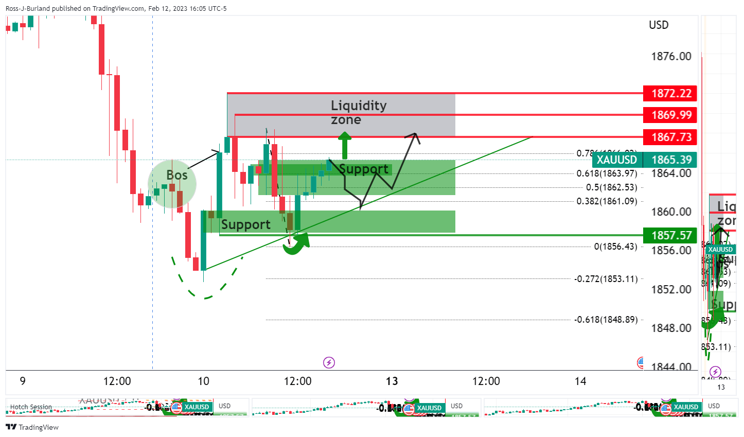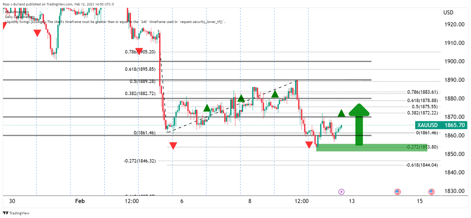 Eventually, and not necessarily this week as it depends on how much of a squeeze the bulls can put onto the shorts, the bears will need to get below $1,850 support for the low-hanging fruit en route towards the $1,825 target.