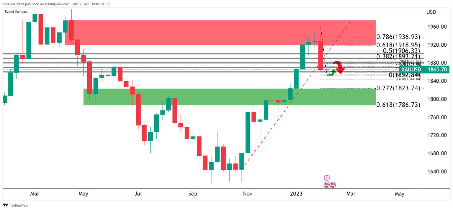 We are still looking at a test of around $1,890 before the next shift to the downside if sticking to the principal bearish thesis drawn back on January 29 when assessing the landscape for the new month of February and initial balance: