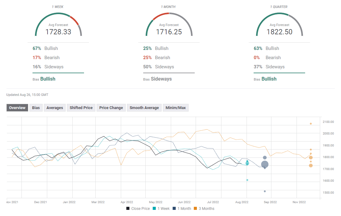 The FXStreet Forecast Poll shows that a majority of polled experts expect gold to stage a rebound next week. The one-month outlook, however, paints a mixed picture with half of the experts seeing the price holding at around the $1,730-$1,735 area.