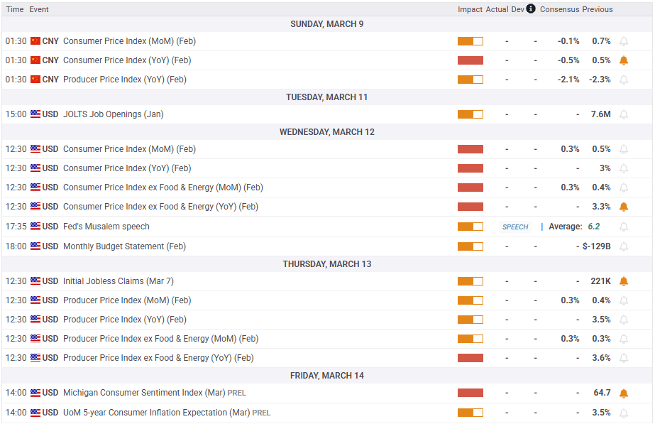 The US economic calendar will feature Consumer Price Index (CPI) data for February on Wednesday. Because the Federal Reserve (Fed) will be in the blackout period ahead of the March 18-19 policy meeting, the inflation report could influence the market pricing of the Fed rate outlook and drive Gold’s action.