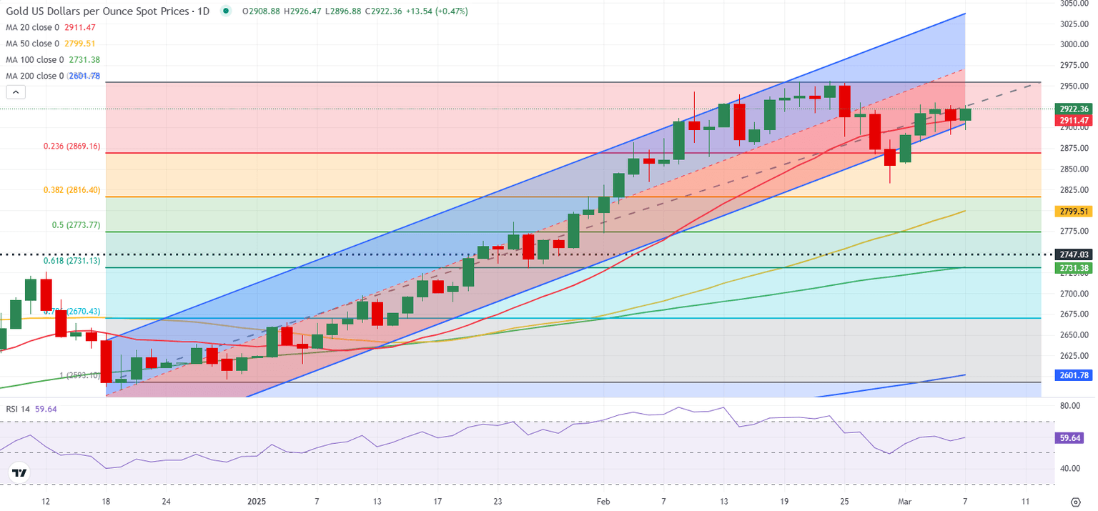 As the Trump administration’s 25% tariffs on Canadian and Mexican imports, as well as the additional 10% on Chinese goods, went into effect early Tuesday, the USD selloff picked up steam. In turn, XAU/USD rose about 0.9% on Tuesday and closed the day comfortably above $2,900.