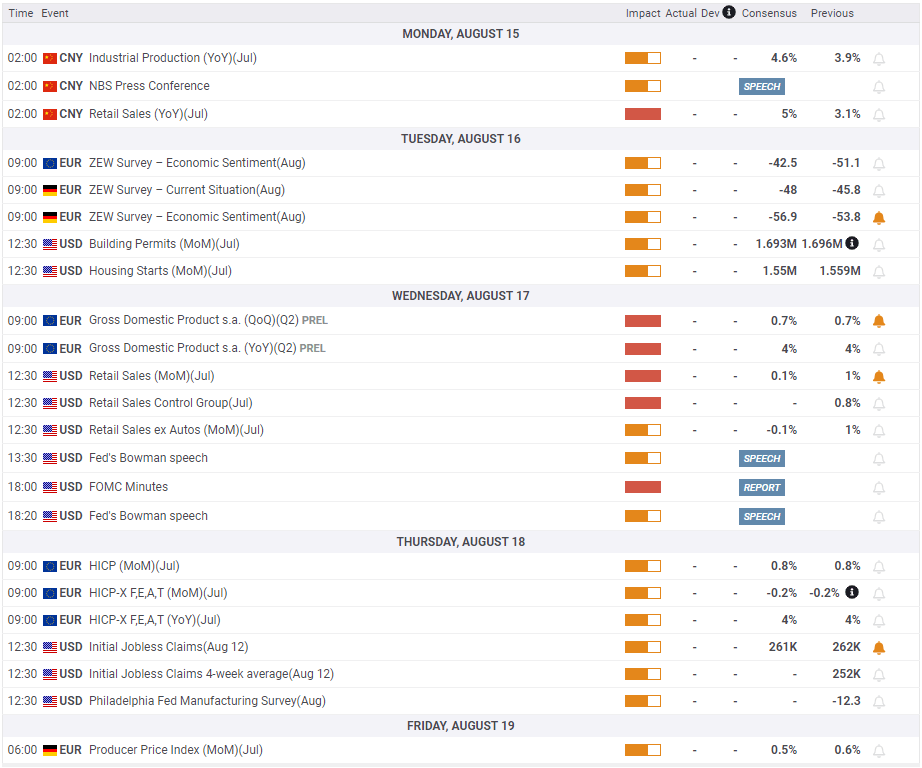 Retail Sales data from China will be looked upon for fresh impetus at the beginning of the week. Investors expect sales to rise by 5% on a yearly basis in July following June’s increase of 3.1%. Although the impact of this data on gold’s valuation is likely to remain short-lived, a weaker-than-expected print could weigh on the risk sentiment and drag XAU/USD lower by providing a boost to the dollar and vice versa.