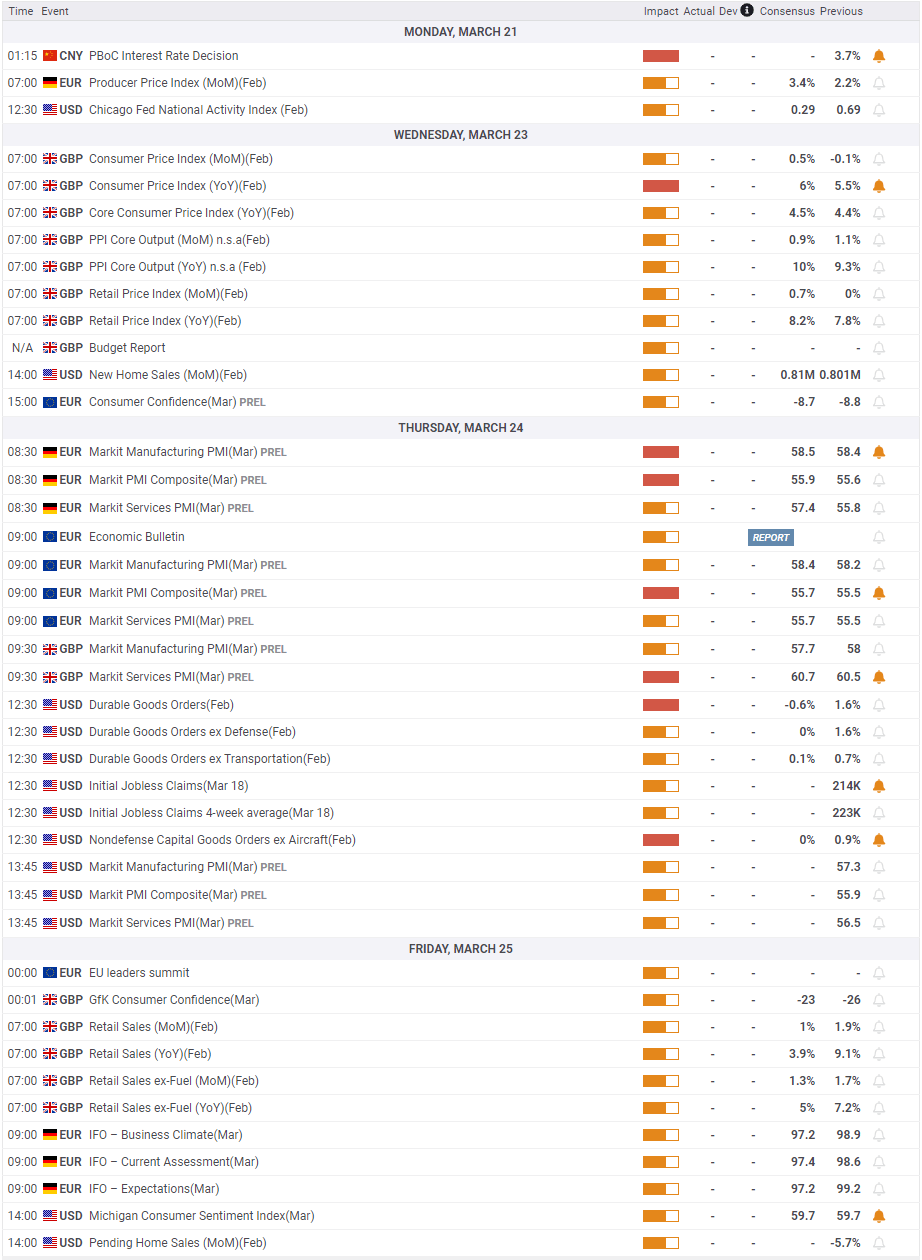 On the other hand, the precious metal could come under renewed selling pressure if markets remain hopeful of a ceasefire. It’s difficult to say whether or not we will have a clear picture of what will happen on the geopolitical front next week but a prolonged Russia-Ukraine conflict should force investors to stay away from risk-sensitive assets. “Russian delegation to Ukraine peace talks has expressed readiness to work much faster than now,” a Kremlin spokesperson said on Friday. “Ukraine delegation has not shown similar readiness to speed talks up but those negotiations continue.”