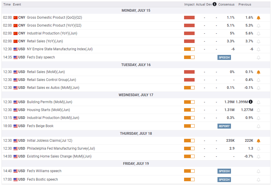 According to the Xinhua news agency, China's Communist Party will hold a long-delayed third plenum from July 15 to 18. Markets expect a series of economic reforms, with a focus on property policies, to be announced following this meeting. In case markets turn risk-positive after this event, Gold could gain traction.