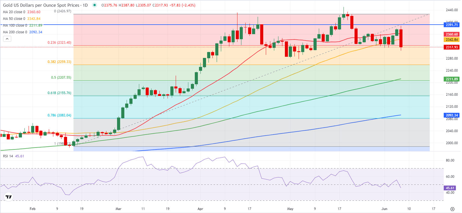 On Friday, Reuters reported that the People’s Bank of China (PBoC) halted Gold purchases to its reserves in May after increasing Gold reserves for 18 consecutive months. “China held 72.80 million troy ounces of gold at the end of May, unchanged from the end of April, the data showed,” Reuters said. With the immediate reaction to this headline, XAU/USD dropped below $2,340, erasing a large majority of its weekly gains in the process.