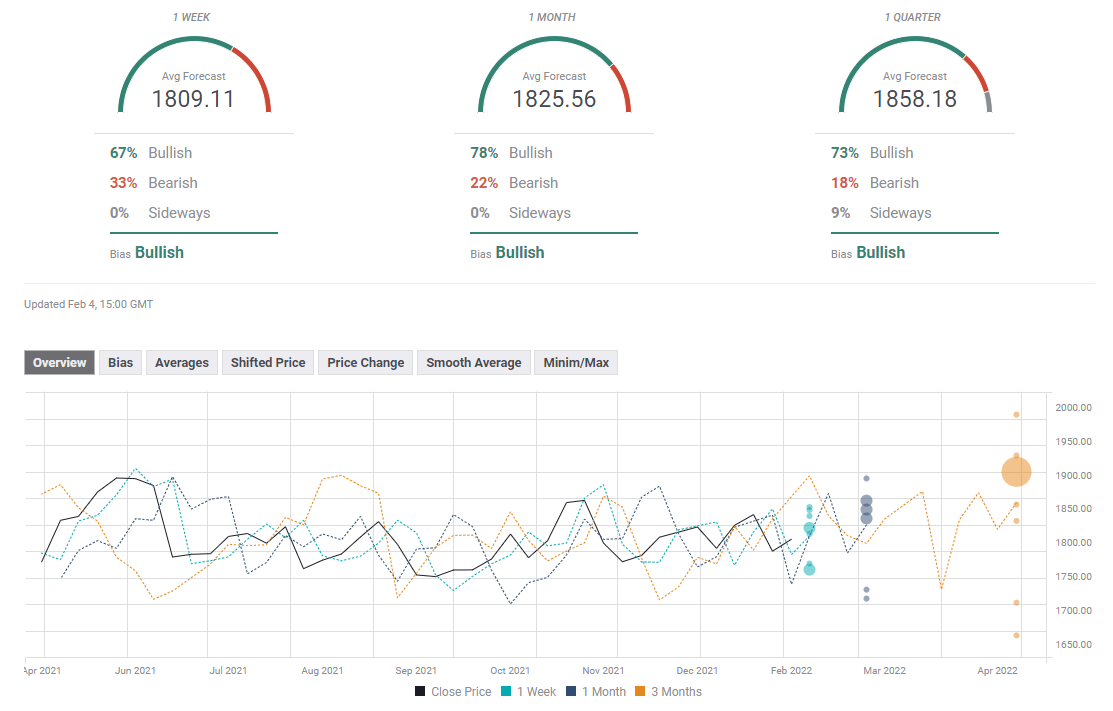 The FXStreet Forecast Poll shows that gold's bullish bias is unchanged in the near term but the one-week target of $1,809 suggests that there isn't a lot of room on the upside.