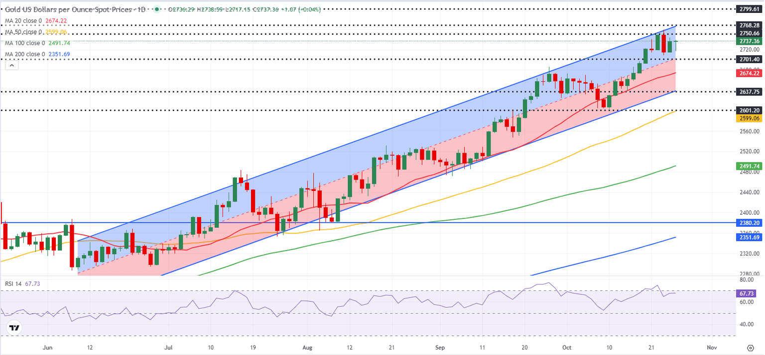 - Gold corrected lower after touching a new all-time high at $2,758.