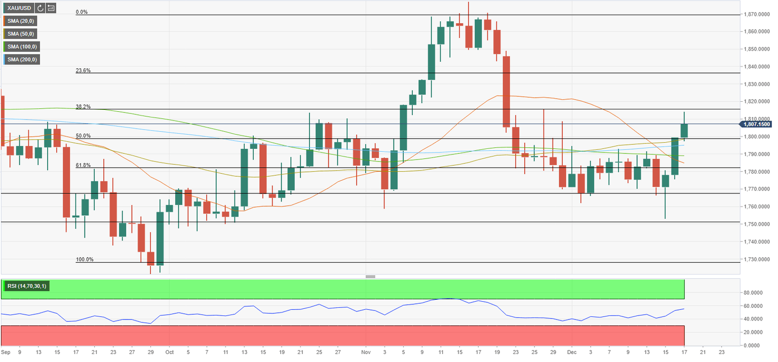 Below $1,800, $1,790 (100-day SMA) could be seen as next support below $1,780 (Fibonacci 61.8% retracement).