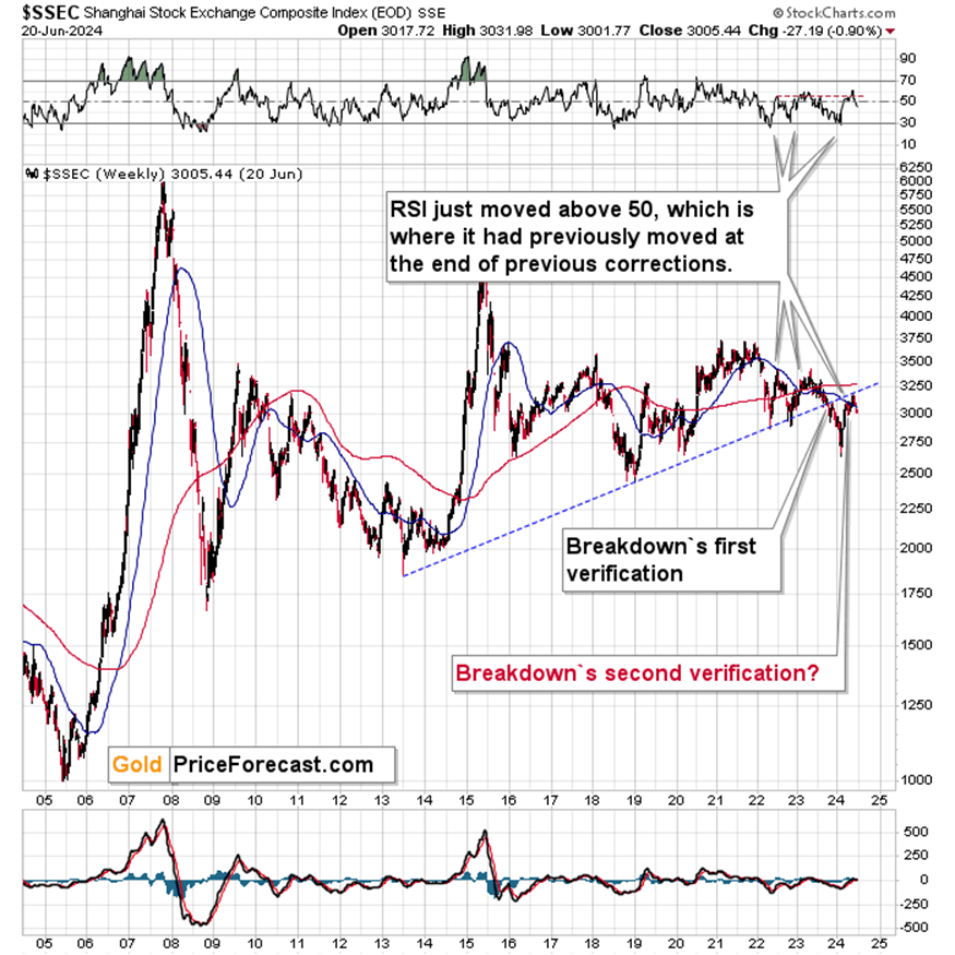 This is bad. Like, really bad. This line proved to be strong support three times – in 2020 and in 2022. And now it was verified as resistance. Since commodities like copper are already declining, suggesting that technical indications from the Chinese market are not accidental, Chinese stocks can indeed slide.