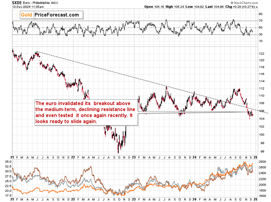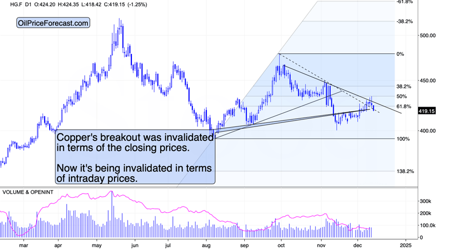Copper recently invalidated its breakout above the declining resistance line. It’s done so in terms of the daily closes, which was already a bearish sign… But today we see something new. We see an invalidation also in intraday terms, which serves as an additional bearish confirmation.