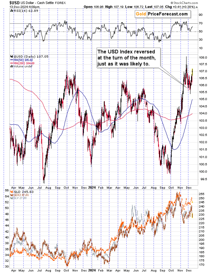 Besides, the USD Index is moving higher once again, which is a bearish factor for commodities and precious metals.