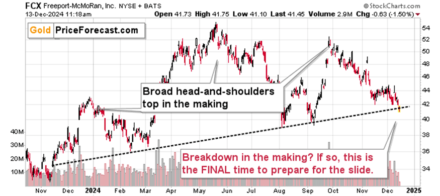 Besides, FCX, the copper and gold stock (that we’ve been shorting as well) already moved below its previous December and November lows.