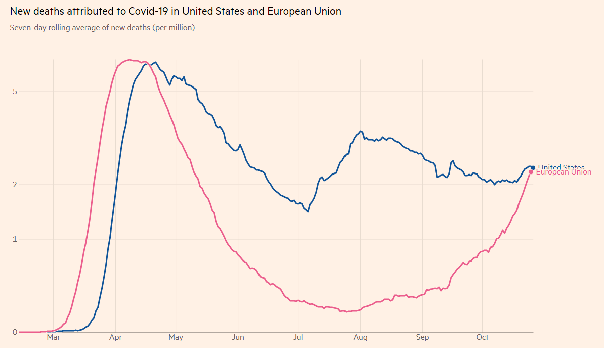 Joseph Trevisani: That is what we saw the first time around but during the second wave in the US the fatalities were far less, a function of better treatment and the much younger cases...we shall see this time. At any rate, the federal government will likely leave the decision to the states. The election is dominating news coverage in the states. Very different than in the spring. And so far fatality rates have not moved much, that could and may change of course.