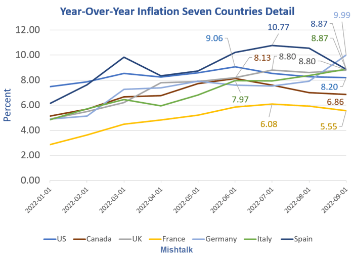 .Inflation in Spain was the highest peak so far at 10.77 percent.