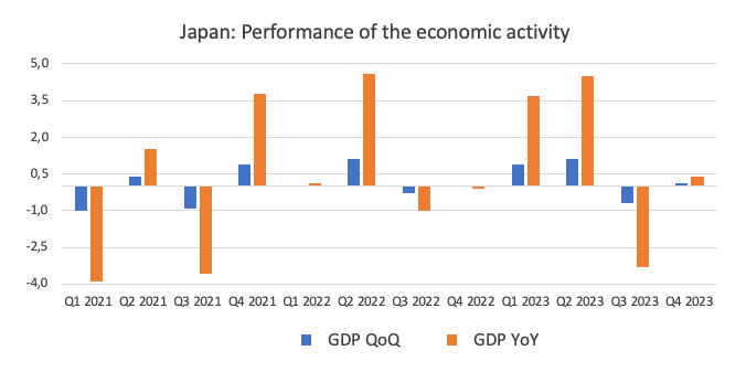 - The Japanese economy avoided a technical recession in Q4 2023.