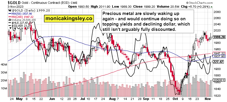 Precious metals are still subdued, and even if miners keep underperforming, these metals will be the place to be in, especially given the USD turn south (yes, the dollar top I talked weeks ago as one in the making, is here).