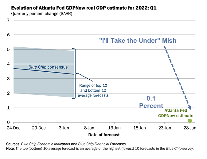 GDPNow Initial Forecast for 2022 Q1, Chart by Atlanta Fed, Chart Comments by Mish