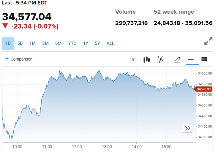 Equities dropped sharply on their open after the 8:30 am ISM release. Within 20 minutes the S&P 500 had lost 40.19 points from Wednesday’s close. After the opening plunge, the recovery was swift and by noon the average had regained almost all of its decline and finished down 15.27 points, -0.36%, at 4.192.85. The Dow shed 265.97 points in the same time frame, recovered in similar fashion and concluded at 34,566.04, off 23.34 from Wednesday, -0.07%.
