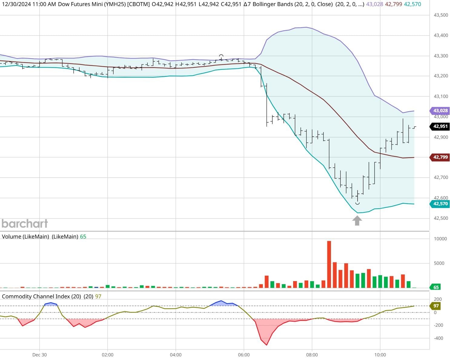 Yesterday we suggested a Down Day and the markets didn't disappoint. We saw no evidence of Upward movement yesterday hence the Downside bias. Today is an abbreviated day with the New Year holiday; the bond market will close at 2 PM EST but the stock market itself will close at normal time. Personally, I think traders will be heading for the exit doors early as if someone didn't reach their earning goal by today, one more day won't make a difference. Personally, I wish you all a very Happy New Year and trust that we will have continued success in 2025. We will be back on Thursday, January 2nd