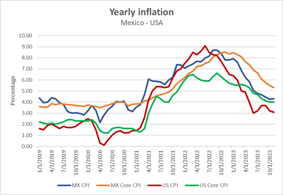 Discussions about rate cuts on both sides of the border have gathered traction due to the disinflation process, with both economies on their way to hitting their goals of 3% plus or minus 1% for Banxico and 2% for the Fed. Nevertheless, both central banks aim to achieve their goals by 2025 and 2026.