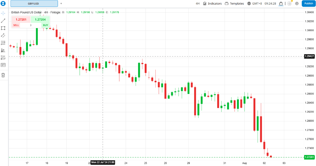 The British Pound (GBP/USD) plummeted to 1.2735 (1.2835) after the Bank of England cut its Official Bank Rate by 25 bps to 5.0%. While the move was expected, markets saw the likelihood of more reductions for the rest of the year.
