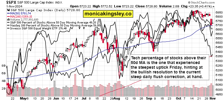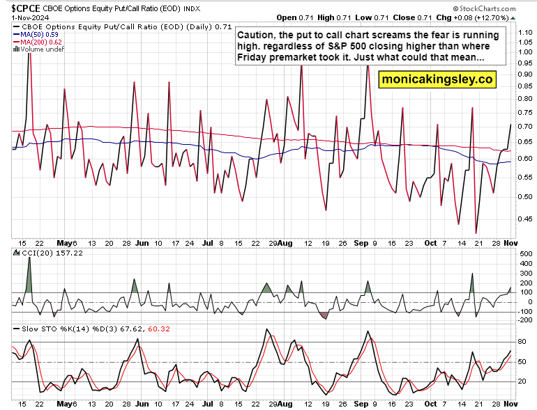 This is no time to play play hero for elections resolution with a wildly long bias – way too risky early in the week, better proceed with our short gains being locked in as waning market breadth (bearish divergence, anyone?) while the index had been moving in a tight range without fresh highs, is a clear warning sign.