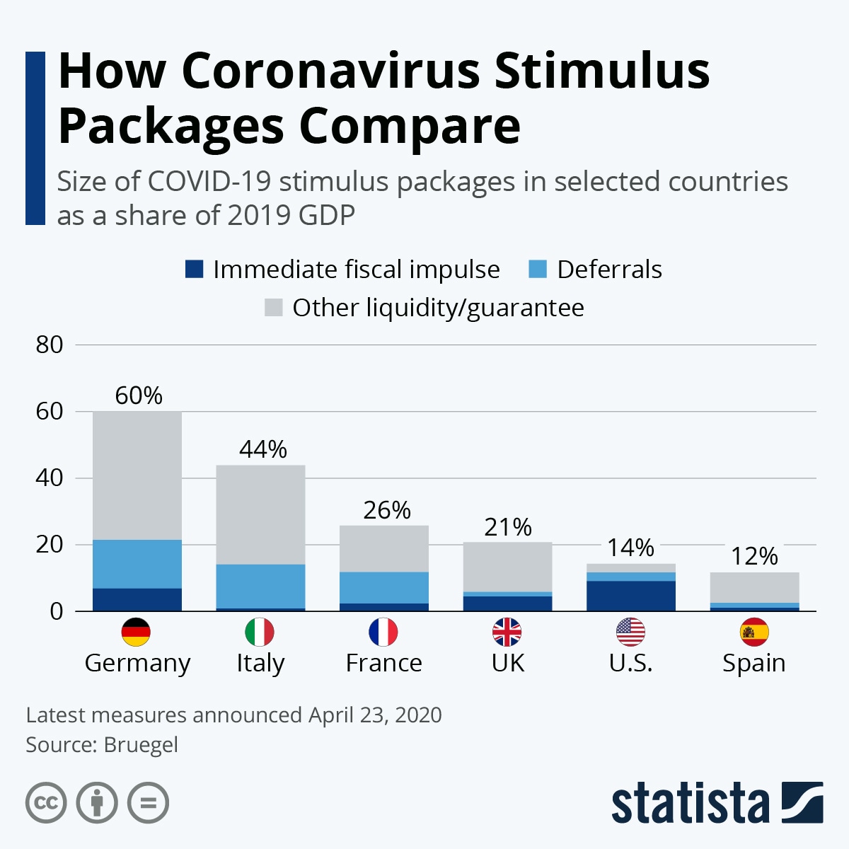 The government has also been active in supplying fiscal stimulus, pumping money into the economy. Apart from helping consumers and businesses, the funds also support the stock market. While the US has not pledged as many funds – compared to its Gross Domestic Product – the majority of cash deployed is in direct payments. That differs from other countries that opted for deferrals and loans.