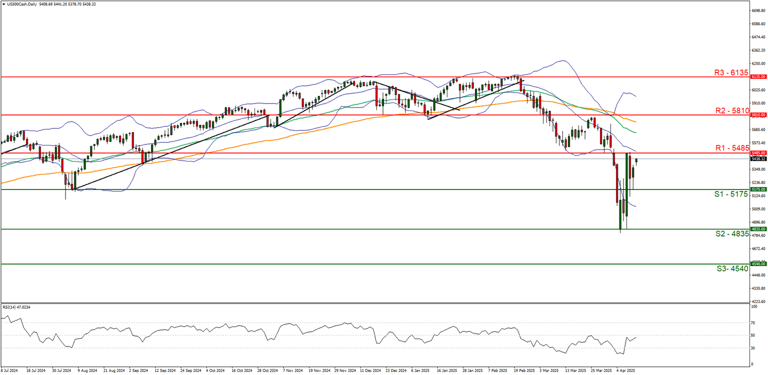 US500Cash appears to be recovering some ground following its dramatic fall. We would opt for a sideways bias for the index and supporting our case is the RSI indicator below our chart which currently registers a figure near 50, implying a neutral market sentiment. For our sideways bias to be maintained we would require the index to remain confined between the 5175 (S1) support level and the 5485 (R1) resistance line. However, we would opt for a bullish outlook for the index in the event of a clear break above the 5485 (R1) resistance line, with the next possible target for the bulls being the 5810 (R2) resistance level. Lastly, for a bearish outlook we would require a clear break below the 5175 (S1) support level with the next possible target for the bears being the 4835 (S2) support line.