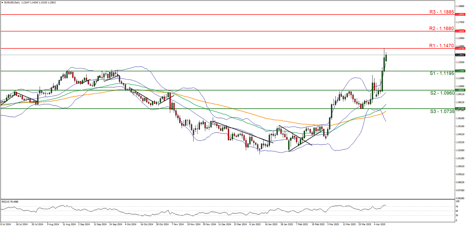 EUR/USD appears to be moving in an upwards fashion, with the next possible target for the bulls being the 1.1470 (R1) resistance line. We opt for a bullish outlook for the pair and supporting our case is the RSI indicator below our chart which currently registers a figure above 70, implying a strong bullish market sentiment. Yet the RSI figure being above 70 may also imply that the pair is due a correction to lower ground. Nonetheless, for our bullish outlook to continue we would require a clear break above the 1.1470 (R1) resistance line with the next possible target for the bulls being the 1.1680 (R2) resistance level. On the flip side for a sideways bias we would require the pair to remain confined between the 1.1195 (S1) support level and the 1.1470 (R1) resistance line. Lastly, for a bearish outlook we would require a clear break below the 1.1195 (S1) support level with the next possible target for the bears being the 1.0960 (S2) support line.
