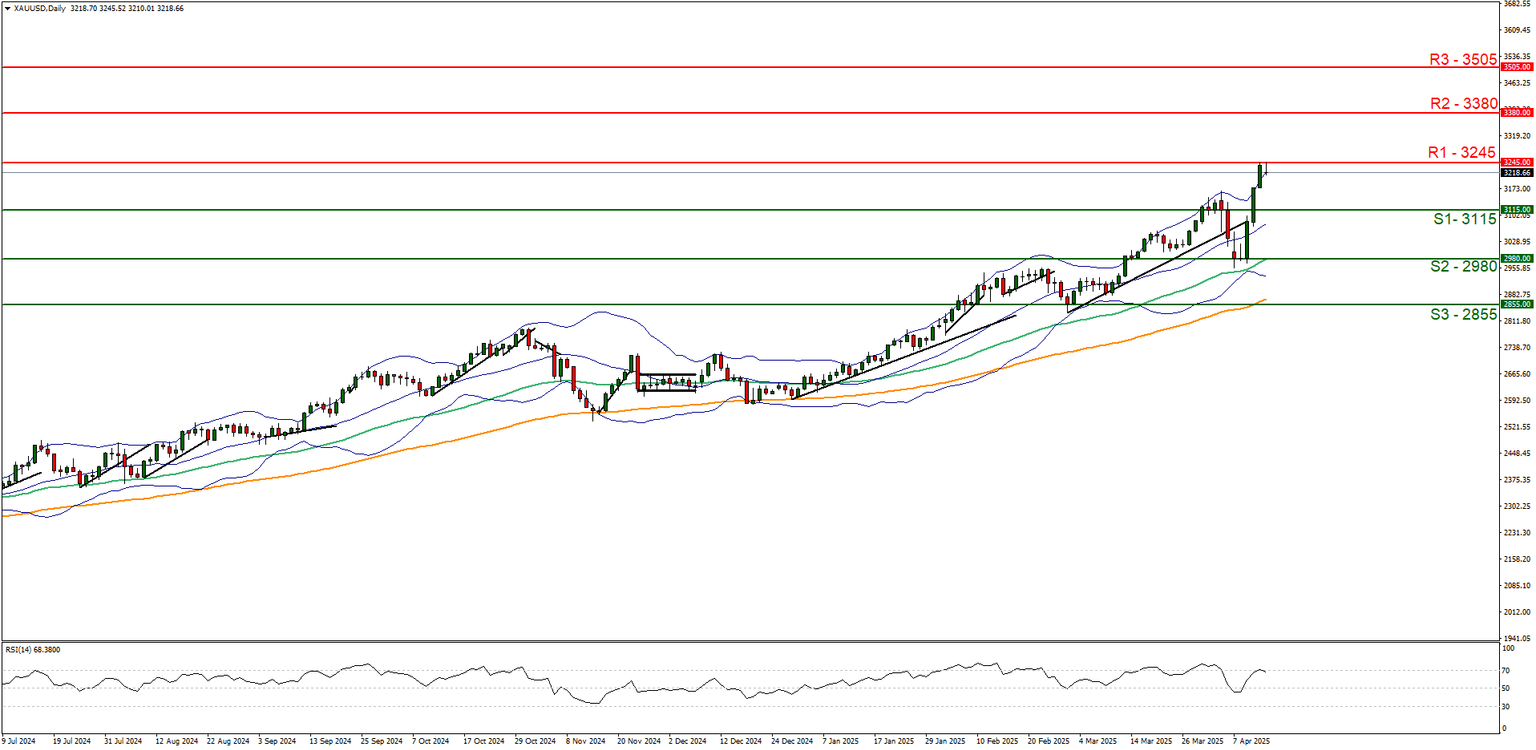 XAU/USD appears to be moving in an upwards fashion, with gold’s price seemingly taking aim for its recently formed all-time-high figure near our 3245 (R1) resistance line. We opt for a bullish outlook for the precious metal’s price and supporting our case is the RSI indicator below our chart which currently registers a figure near 70, implying a strong bullish market sentiment. For our bullish outlook to continue we would require a break above the 3245 (R1) resistance level, with the next possible target for the bulls being the hypothetical 3380 (R2) resistance line. On the flip side for a sideways bias we would require gold’s price to remain confined between the 3115 (S1) support level and the 3245 (R1) resistance line. Lastly, for a bearish outlook we would require a break below the 3115 (S1) support level with the next possible target for the bears being the 2980 (S2) support line.