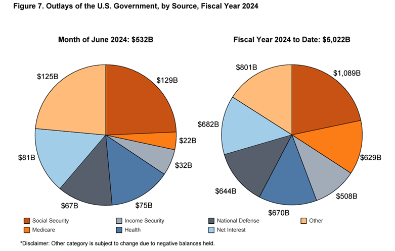 The deficit was also mitigated somewhat by strong receipts in June. The U.S. government collected $466.26 billion last month, according to the latest monthly Treasury statement. This was an 11.5 percent increase in revenue compared to June 2023.