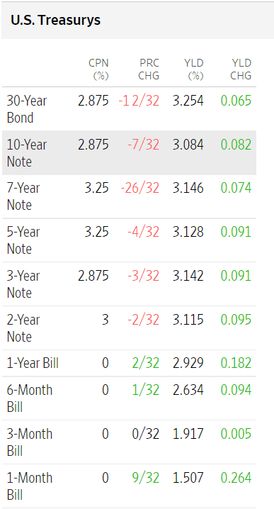 Treasury yields were stronger across the spectrum with all terms of two years or longer closing above 3.0%. The 2-10 Treasury spread remained inverted by 3.1 basis points.