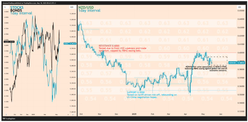 Last week, the Kiwi first rose on US-China trade optimism, then fell as the US Dollar gained. While April's Business NZ PMI showed growth, many still expect an RBNZ rate cut because the wider economy remains soft.