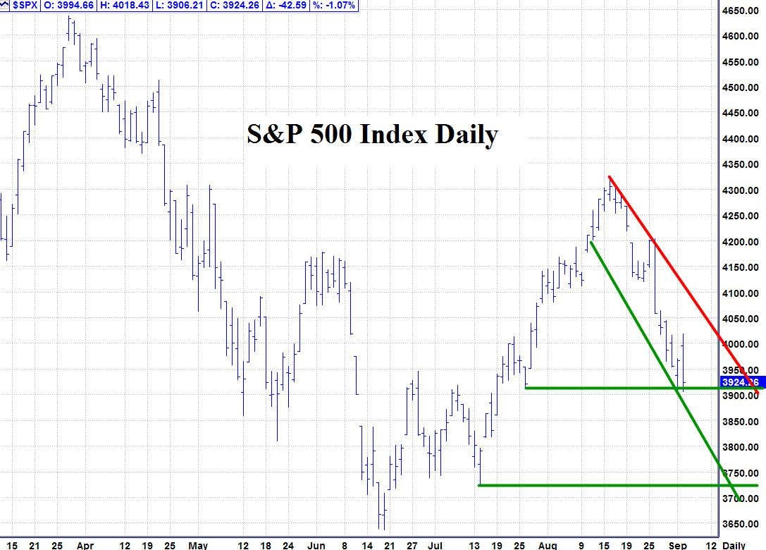 9/02 – The major indices had a big down day to finish with the following closes: DJIA - 327.98; S&P 500 - 42.59; and the Nasdaq Comp. - 154.26.