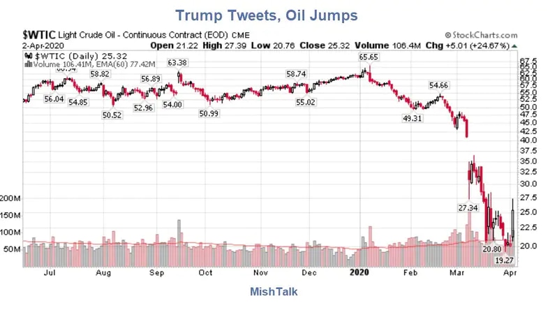 Trump tweet sends oil up 20% but demand prevails