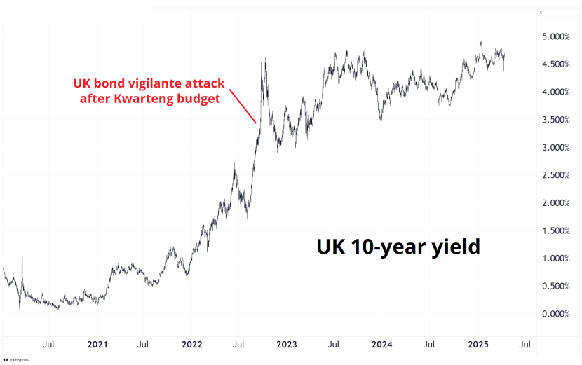 The big question is: “Where is the Bessent Put?” Retweets from Trump suggest he finds the 20% collapse in stocks of little concern and perhaps comical, and the Fed isn’t going to act yet given the precarious inflation and long bond situation, so the only put is in the bond market, not the stock market. As we saw in the UK, the bond vigilantes can only take things so far before the government intervenes.