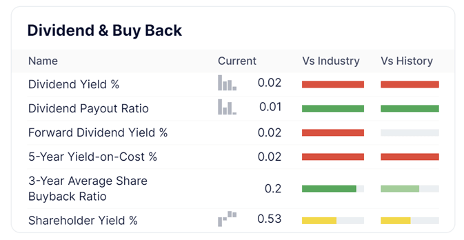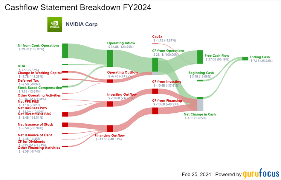 Furthermore, the company has exhibited a remarkable surge in free cash flow, soaring by 269.10% in the past year and maintaining an average annual growth rate of 28.50% over the past decade. Such robust cash flow dynamics underscore Nvidia's financial resilience and capacity for sustained growth.