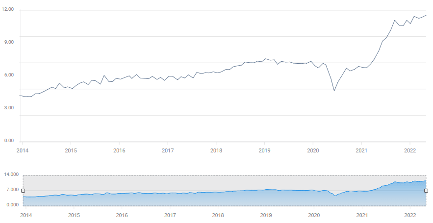 How long will American families mortgage their future to maintain their immediate spending is unknown. An assumption with increasing probability is that after losing to inflation for more than a year, and with the cost of necessities increasing much faster than overall inflation, American families are nearing their breaking point.