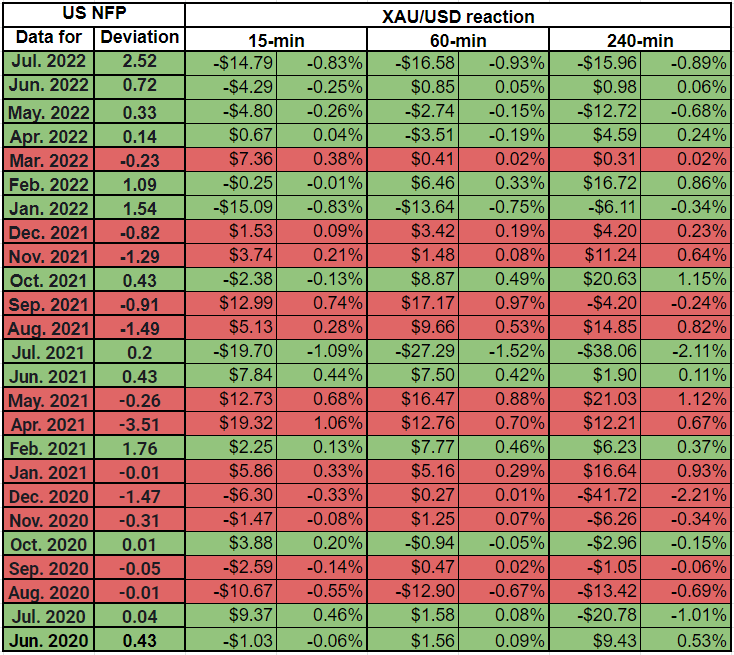 US August Nonfarm Payrolls Preview: Analyzing gold's reaction to NFP surprises