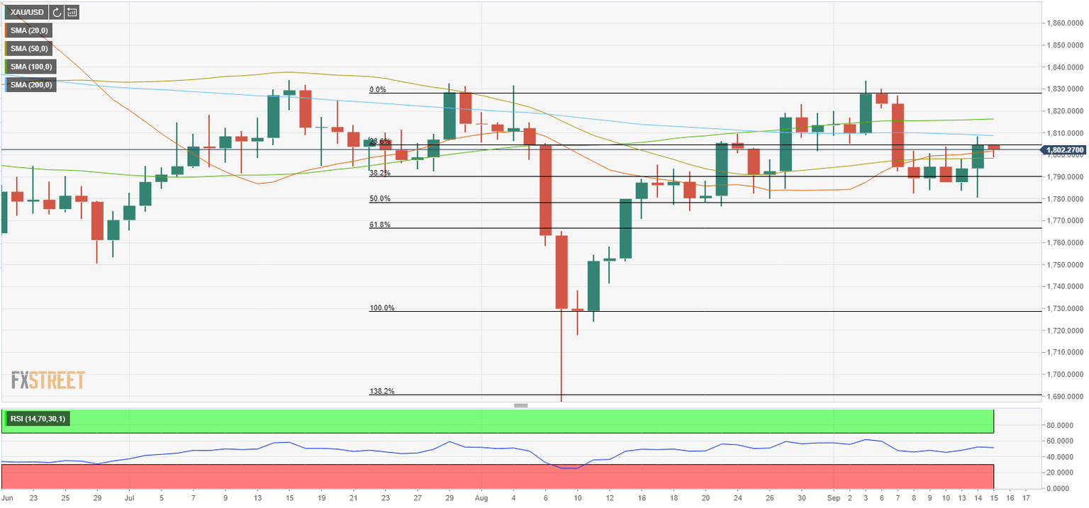 After moving sideways in a relatively tight channel below $1,800 in the previous four trading days, gold shot higher on Tuesday fueled by the sharp decline witnessed in the US Treasury bond yields and the soft inflation report. The XAU/USD pair gained 0.6% and registered its strongest daily close in a week at $1,804 before going into a consolidation phase on Wednesday.